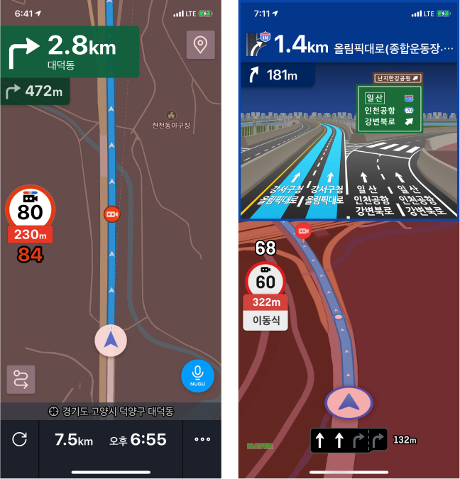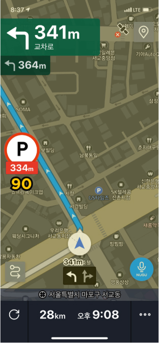 내비게이션도 요새는 모두 다크모드가 적용되어 편하게 운전을 하고 있다.