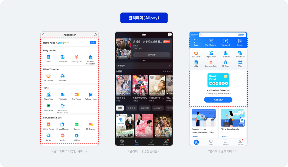 알리페이는 2003년, 알리바바의 전자상거래 플랫폼 ‘타오바오’에서 소비자와 판매자의 결제 편의를 위해 처음 출시되었습니다. 이들의 성공 비결은 구매 사기를 방지할 수 있는 자체 에스크로 결제 시스템으로, 이 기능은 폭발적인 인기를 끌며 알리페이가 중국 전자상거래 시장을 장악하는 데 큰 역할을 했습니다. 이후 알리페이는 결제 및 금융 서비스를 넘어 차량 호출, 티켓 예매, 음식 배달 등 다양한 서비스로 영역을 확장하며 '생활 슈퍼앱'으로 발전했습니다.