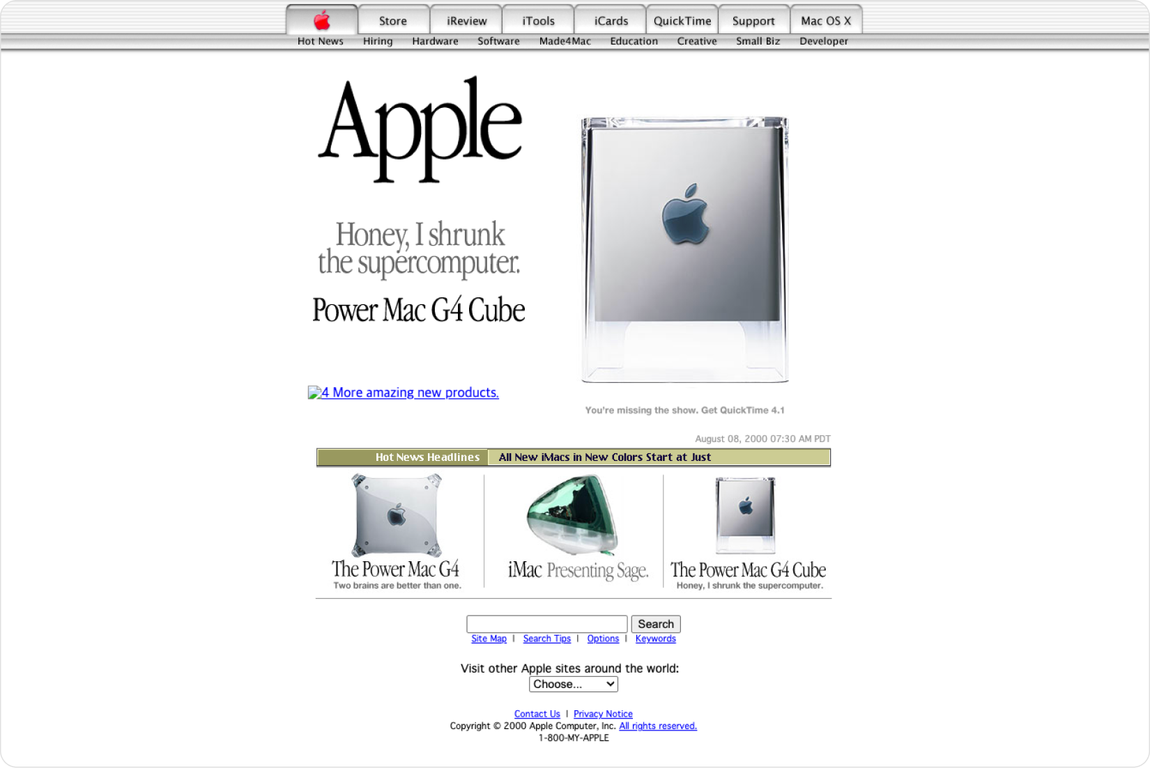 2000년대 애플 사이트는 브랜드 특유의 세련된 미니멀리즘 디자인과, 큰 비주얼, 극단적인 여백을 살펴볼 수 있습니다. 애플은 브랜드 이미지를 극대화하기 위해 기능 설명이나 사용법 등을 최소화해서 예쁘지만 직관적이지 않은 경험을 제공했었습니다. 그래서 제품 간의 비교가 어렵다든지, 원하는 정보를 찾는 데 시간이 오래 걸린다는 문제점이 존재했습니다.