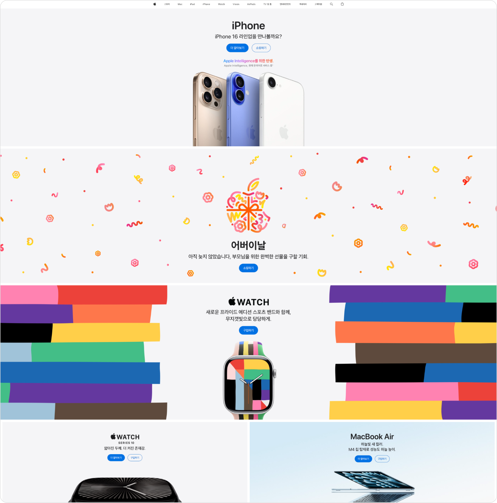 그 후 애플은 심미성과 사용성의 균형을 맞추기 위한 방향으로 제품군별 탐색 경로를 명확히 구분하고, 네비게이션 간결화, 시각적 계층 구조 강화를 통해 사용자가 자연스럽게 제품을 탐색하고 비교를 할 수 있도록 개선했습니다. 더불어 다양한 디바이스 환경에서도 일관되고 직관적인 경험을 제공하고, 애플의 브랜드 아이덴티티를 유지하면서 사용자의 정보 탐색 부담을 줄이는 방향으로 발전했음을 볼 수 있습니다.