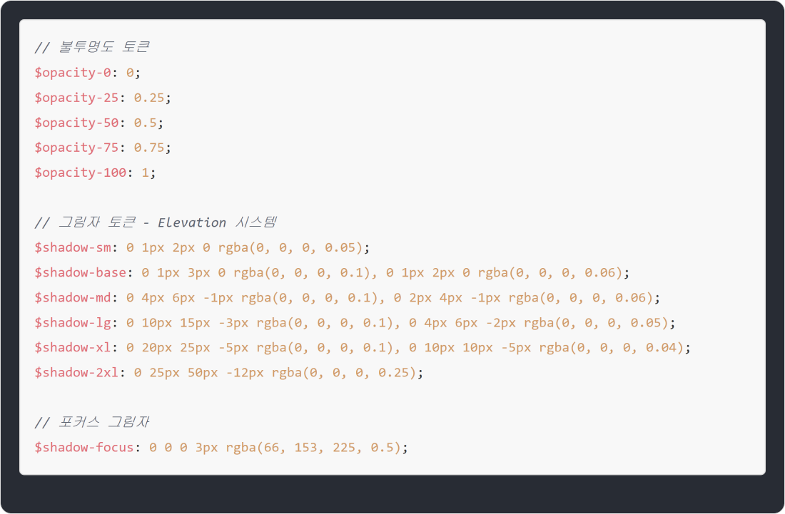 (--버튼-컬러토큰)처럼 토큰 이름으로 보이게 만들 수도 있어서, 개발자들도 어떤 디자인 토큰이 적용되었는지 쉽게 확인할 수 있죠.