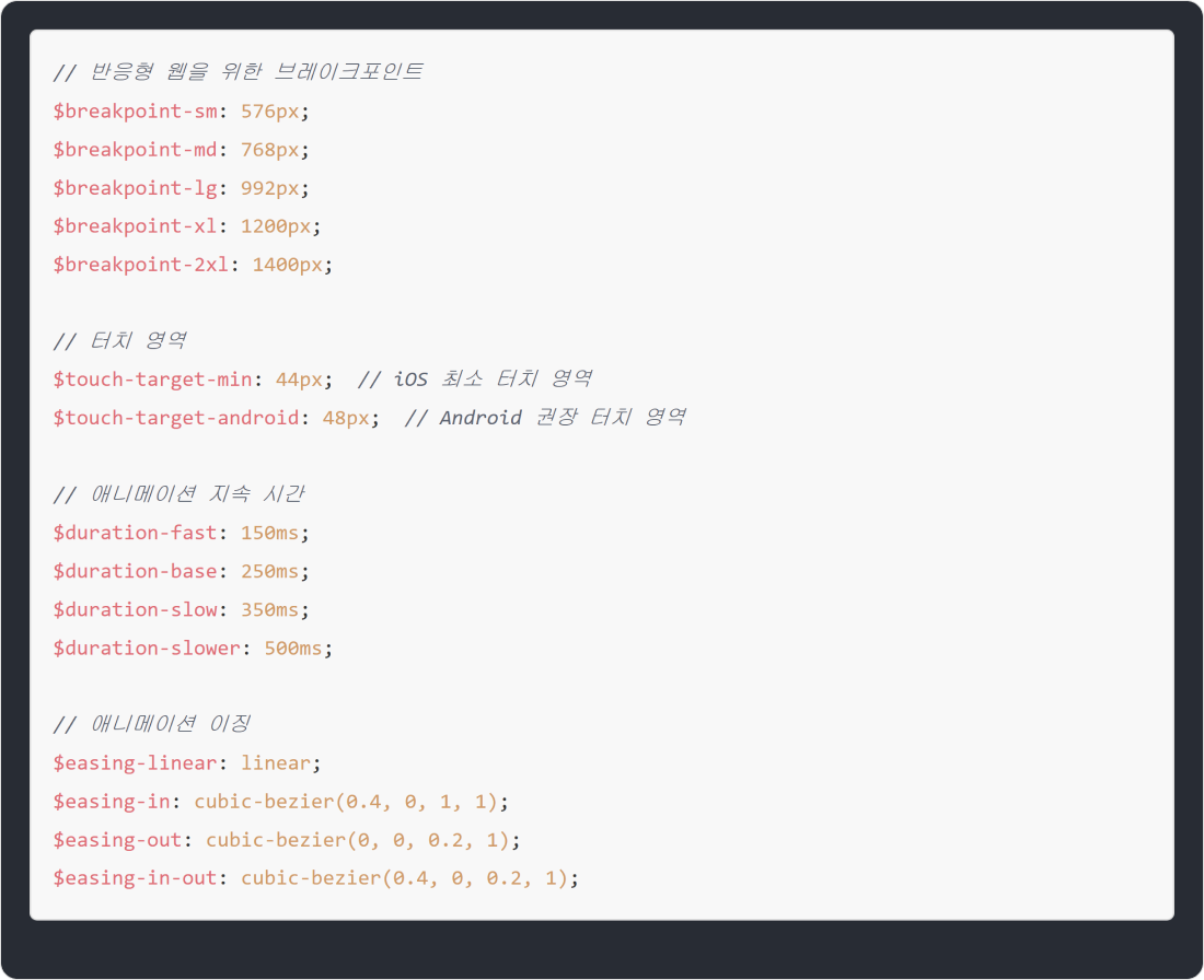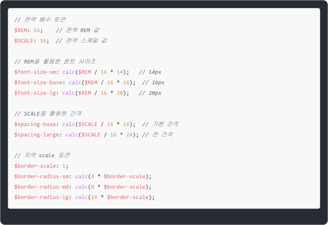 REM, SCALE과 같은 전역 배수 토큰과 그룹별 scale 토큰은 프로젝트 초기에 추가하는 것이 좋아요.