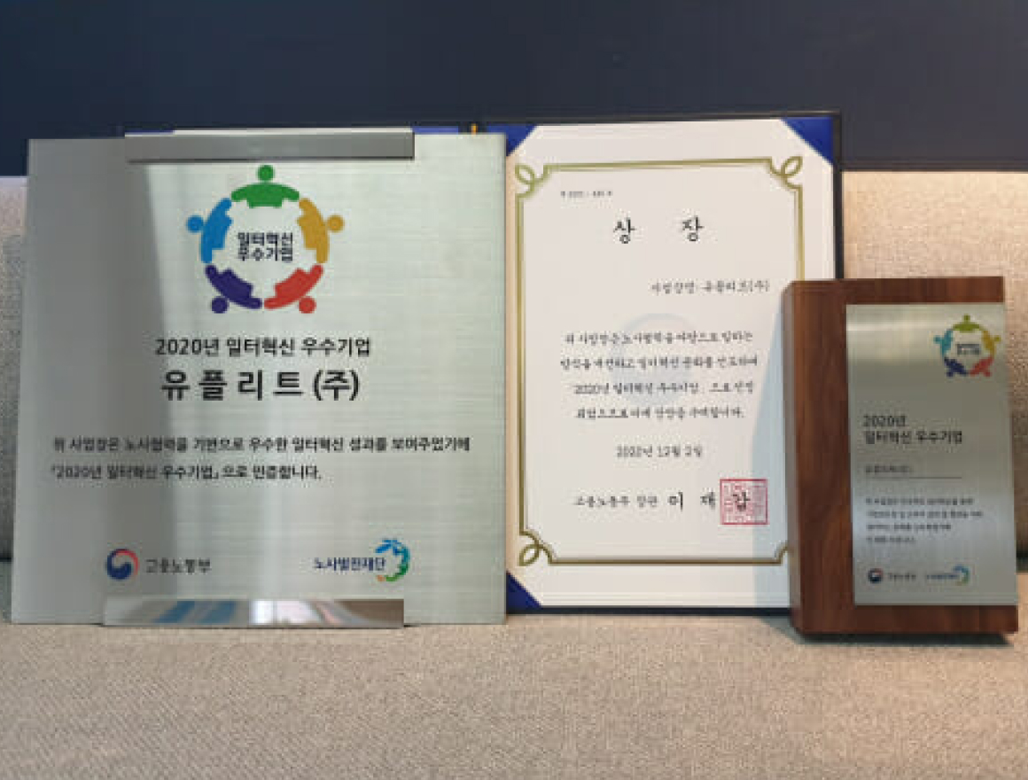 유플리트(대표 최근화)는 고용노동부와 노사발전재단 주관의 일터혁신