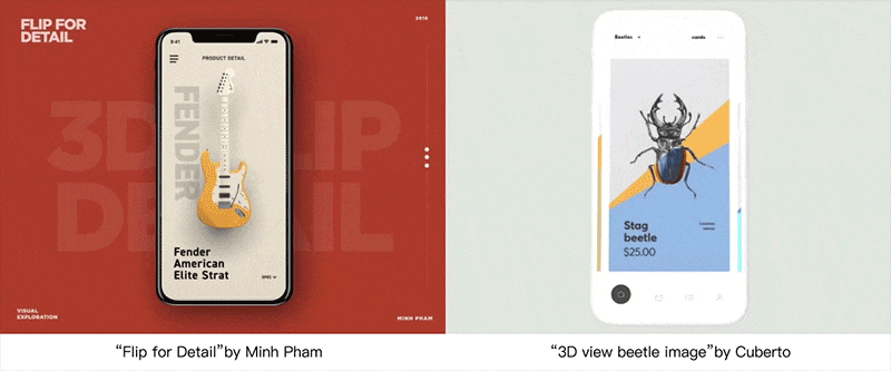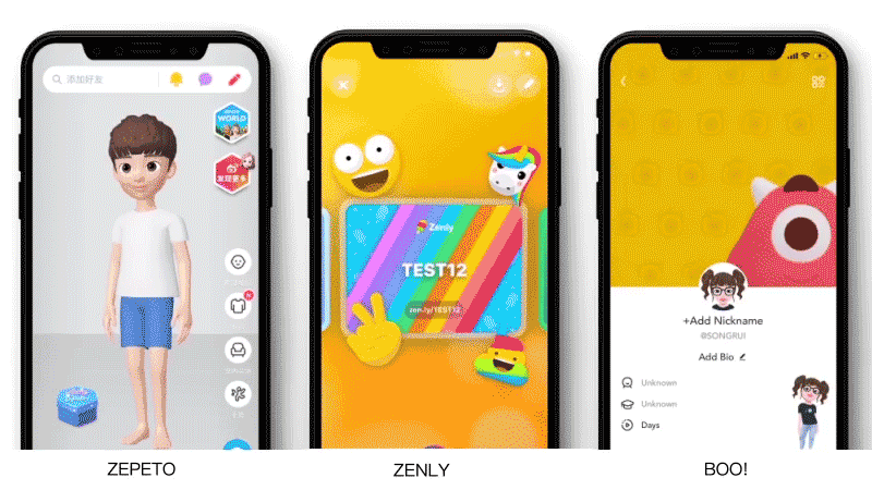 게임과 더불어 3D 스타일을 선보이는 서비스들이 많이 존재하는데, 예를 들어 'ZEPETO', 'IMVU'는 3D 아바타를 사용해 사용자 이미지를 지정합니다. ‘BOO!’ 서비스는 인터페이스 디자인 요소로 3D 캐릭터를 사용하고, ‘ZENLY’는 자이로스코프* 효과를 카드 인터페이스에 적용해 카드가 입체적으로 보이도록 했습니다. 3D 기술은 제품 설계에서 더 자주 사용되어 왔습니다.