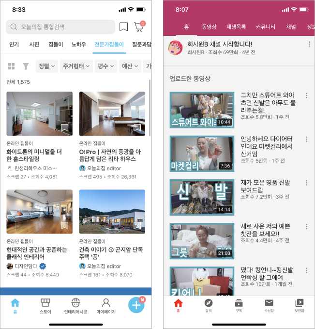오늘의 집은 또한 전문 시공사, 인테리어 회사에서 시공한 현장을 포트폴리오로 보여준다. 전문가가 아닌 일반 사람들이 올린 포트폴리오에도 관심 갖고 보긴 하지만 전문가가 가진 힘을 무시하지 못한다. 요즘의 트렌드, 시공 방법 등 전문가이기에 할 수 있는 콘텐츠를 제공해주고 직접 시공사와 컨택할 수 있도록 연결해준다.