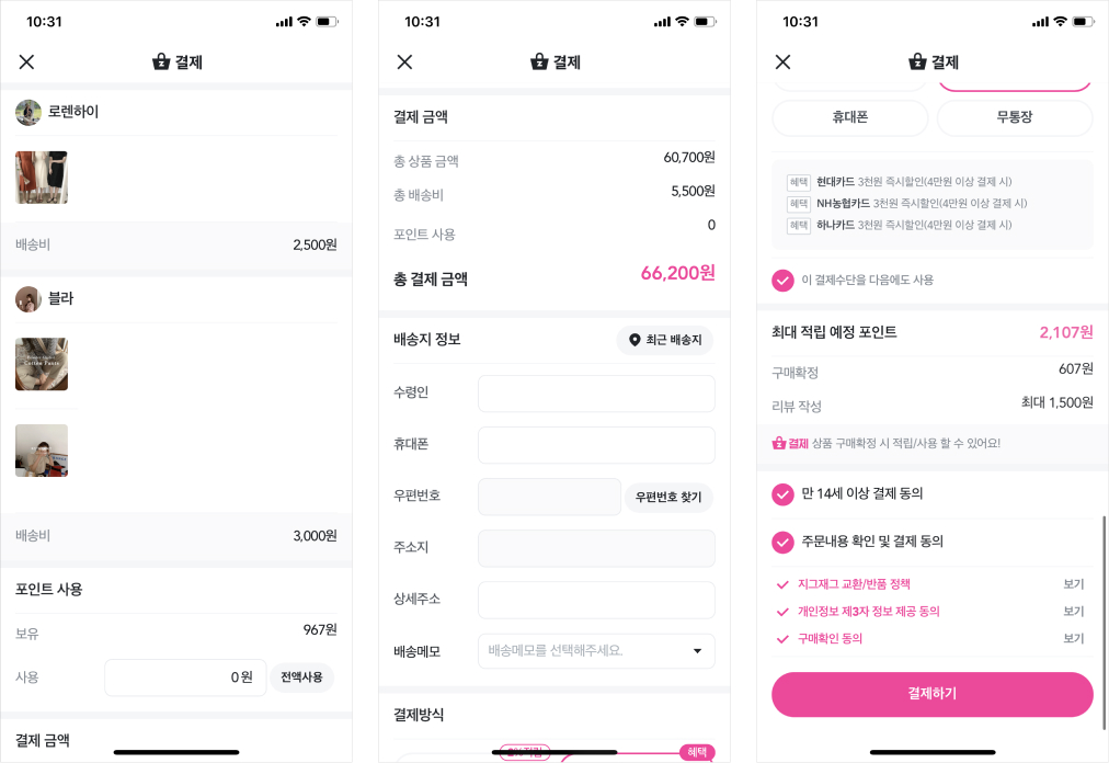 결제는 구매과정에서 가장 중요한 부분이다. 고객의 개인정보가 사용되는 지점이라 안전·보안이 보장돼야 하며, 장바구니에 담기까지 즐거운 의사결정을 거쳤다고 해도 결제 프로세스가 답답하고 너무 길어지는 순간 서비스에 대해 부정적 영향이 생길 수 있는 포인트이기 때문이다.