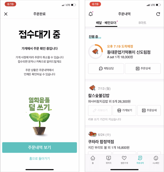 결제 후 명확한 진척상황을 알려주면 고객들은 안심한다. '아, 제대로 결제했구나' '언제 배송이 오겠구나' 등 결제 직후의 알람뿐 아니라 배송이 늦어진다면 미리 알림을 주고 어디까지 준비가 됐는지 적절한 피드백을 제공한다. 라이더가 출발하면 지도와 함께 라이더가 언제 출발했고 언제 도착하는지 시각적으로 명확하게 인지시켜주기도 한다. 이 작은 배려로 고객들은 초조해하지 않고 기다릴 수 있다.