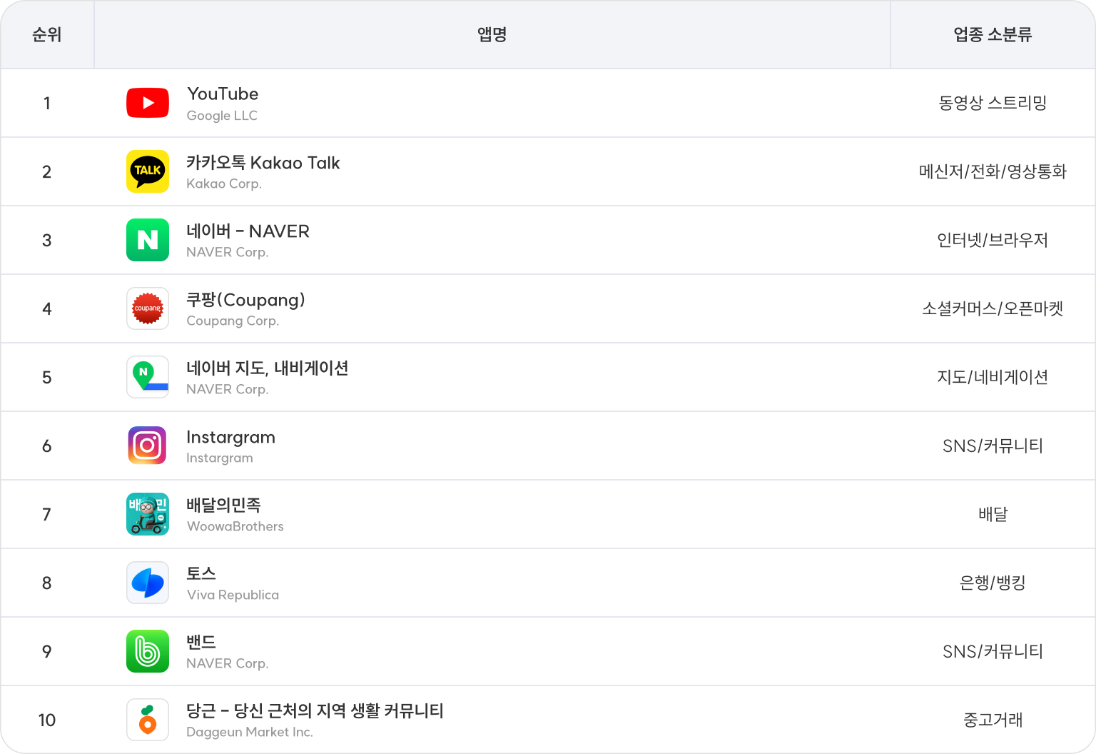 익숙한 앱들이 많이 있지 않나요? 그만큼 많은 분들이 사용하는 앱이라는 증거가 될 수 있습니다.