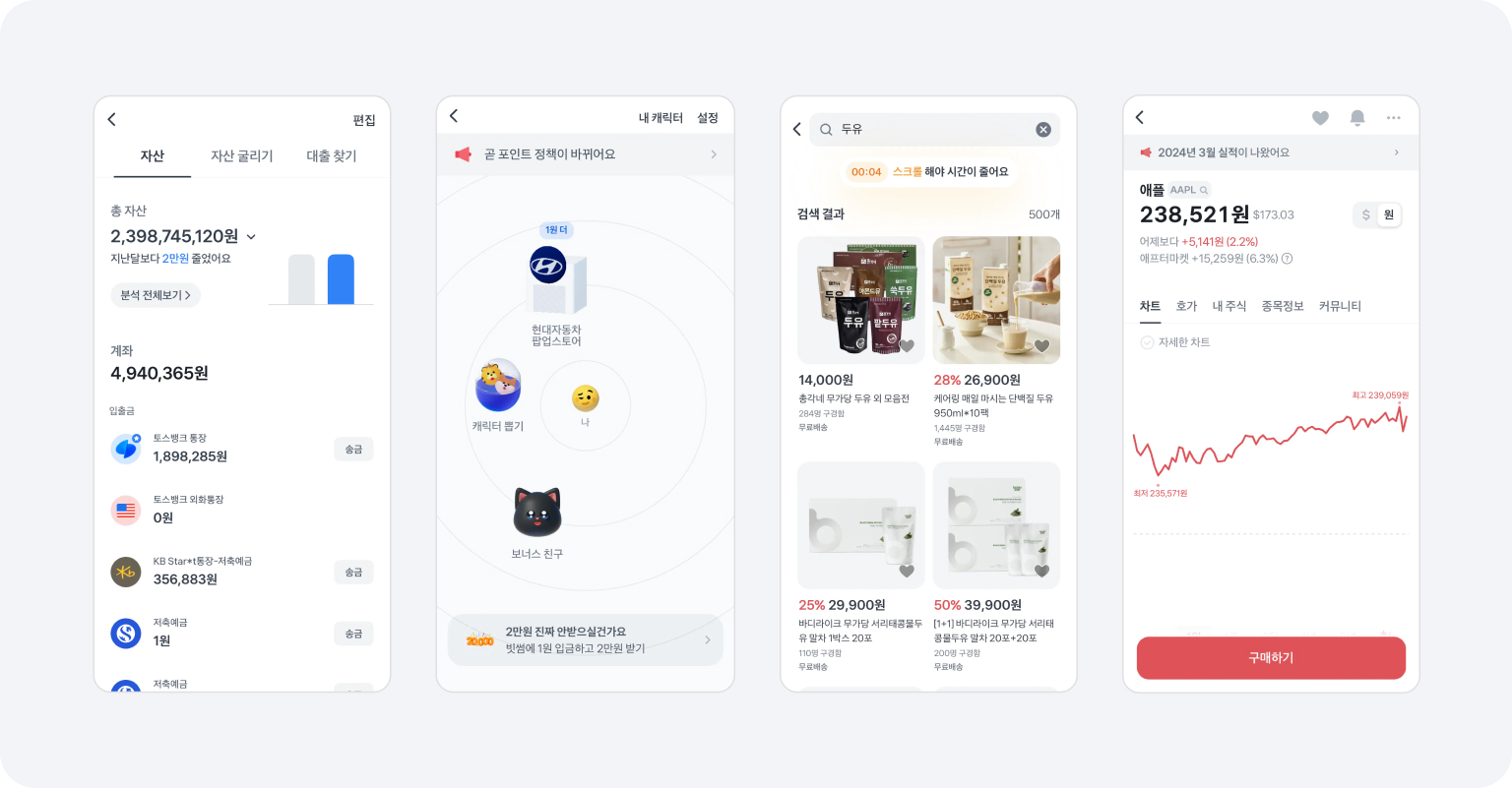 금융권에서 새로운 역사를 쓴 토스를 선정했습니다. 토스는 다양한 금융 서비스를 제공하는 종합 금융 플랫폼입니다. 간편 송금이 주된 서비스며, 대부분의 은행 계좌와 카드 등의 자산을 일괄적으로 관리할 수 있고, 사용자 참여 이벤트를 다양하게 진행하고 있어 앱 테크로도 유명합니다. 자산관리와 앱테크에 강한 토스를 우리는 왜 콘텐츠 마케팅 전략을 쓰는 앱의 대표주자로 선정했을까요?