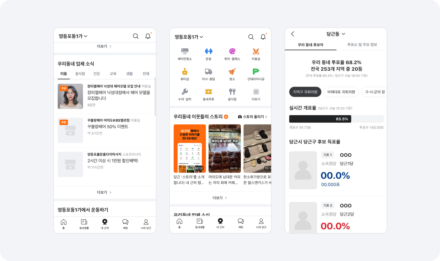 올해 4월, 제 22대 국회의원 선거가 있었죠. 당근에서는 앱 접속 증가를 위해 선거 관련 서비스를 추가하였습니다. 사용자 거주 지역의 후보들 정보를 한 눈에 확인할 수 있고, 실시간으로 전국 투표율 순위를 보여주어 투표율이 저조한 지역에서는 자발적으로 투표를 유도하는 글들이 많이 올라왔다고 해요. 당시 접속하는 사람들이 많아져 최고 DAU를 기록 했다고 합니다.