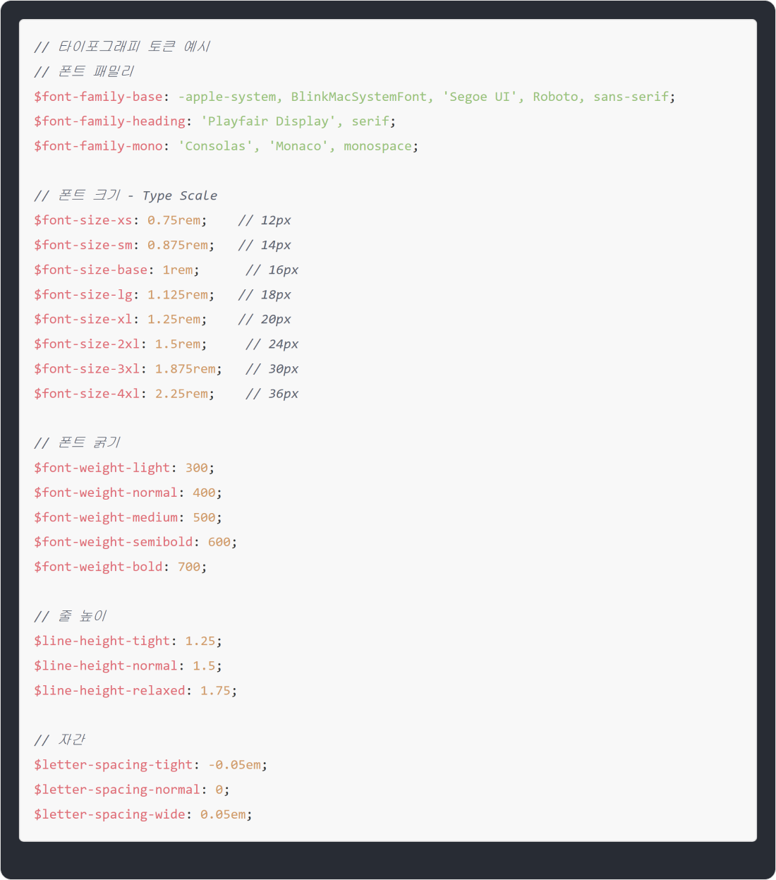 REM, SCALE과 같은 전역 배수 토큰과 그룹별 scale 토큰은 프로젝트 초기에 추가하는 것이 좋아요.
