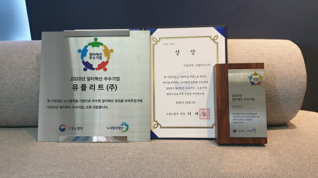 출처 : ZDNET Korea, [유플리트, 일터혁신 우수기업 고용노동부장관상 수상] https://zdnet.co.kr/view/?no=20201215174150