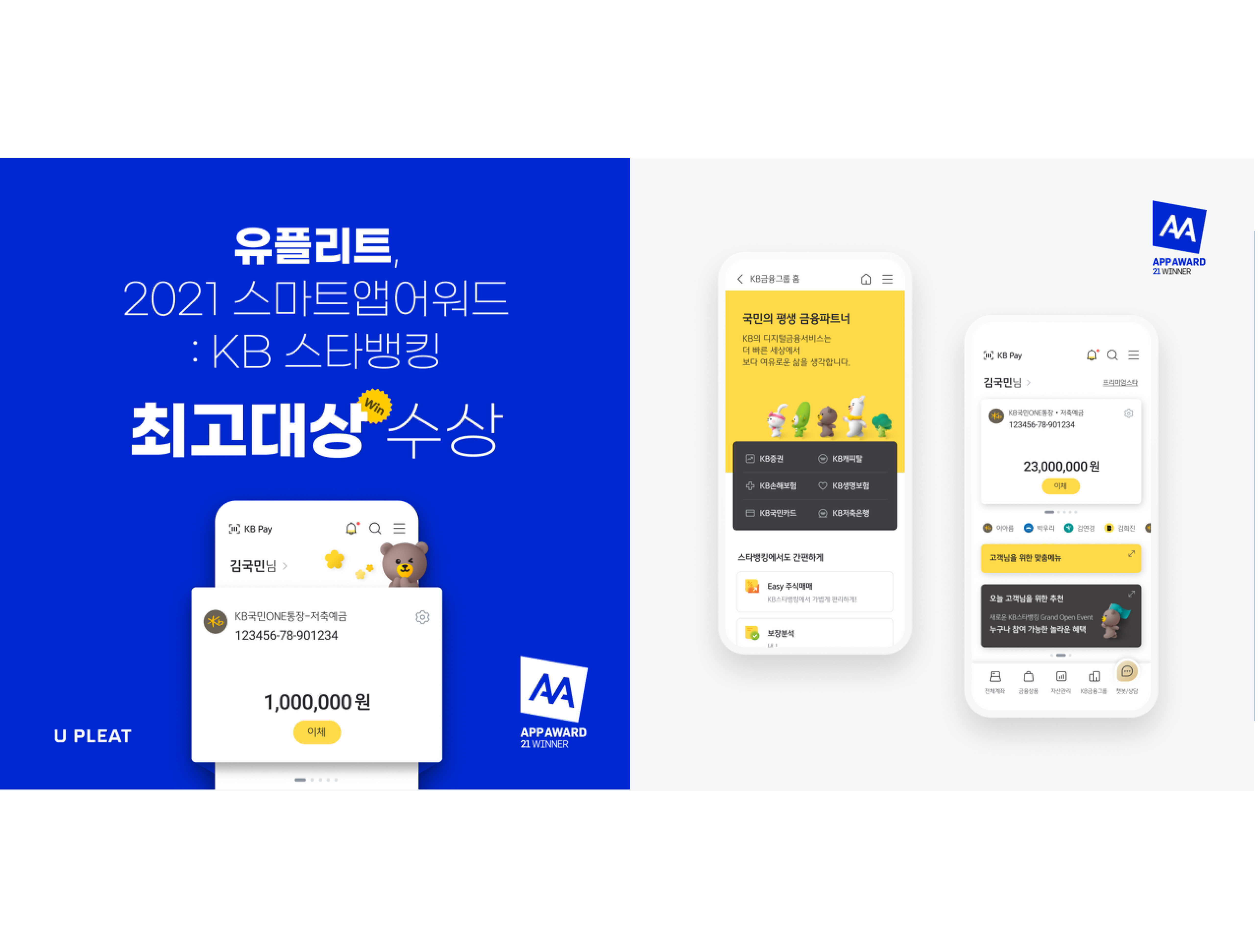 디지털 에이전시 유플리트(대표이사 최근화, www.upleat.com)가 UX컨설팅 및 UX디자인을 총괄한 국민은행 스타뱅킹이 ‘스마트앱어워드 2021’ 에서