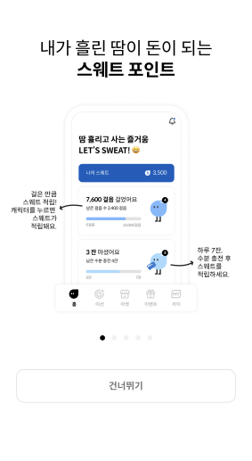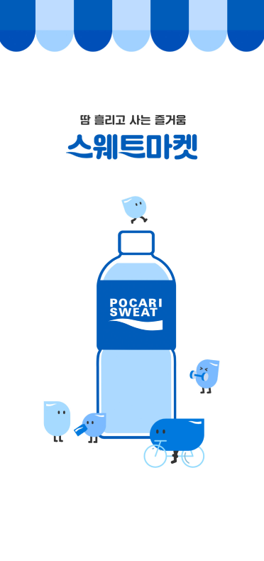 ‘스웨트마켓'은 땀을 흘려서 돈이 되는 신개념 땀테크 서비스입니다. 포카리스웨트 ‘스웨트마켓' 앱 구축을 통해 Brand Experience를 제공합니다. IP 활용을 통해 브랜드에 친근감을 증대시키고, 동아오츠카 쇼핑몰 유입/리텐션을 상승시켜 연계 판매 수익을 창출하는 목표를 가지고 구축을 했습니다.