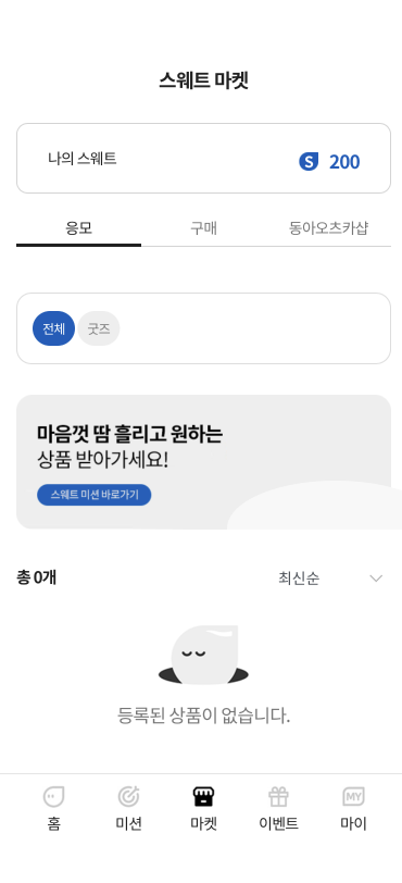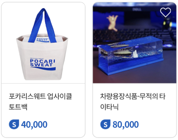 열심히 땀 흘리며 모은 스웨트로 상품을 구매하거나 응모할 수 있습니다.