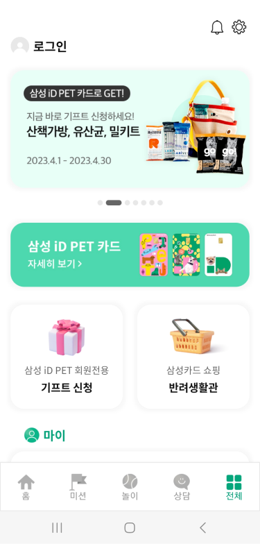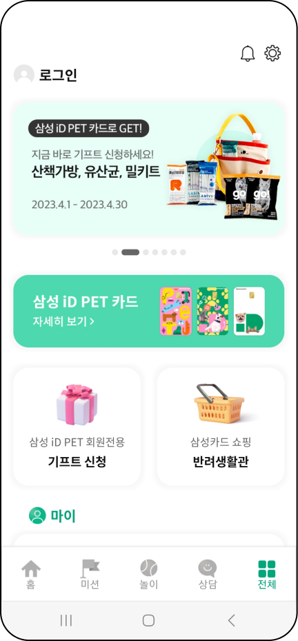삼성카드 커뮤니티서비스는 ‘베이비스토리, 아지냥이, 키즈곰곰, 인생락서’의 이름으로 ‘육아, 키즈, 반려동물, 세대공감’이라는 연령별, 관심사 별 기반의 4개의 커뮤니티 서비스를 제공하였으나 20~21년 시행된 서비스 축소 및 개인의 취향 존중이라는 삼성카드의 모토를 토대로 아지냥이 (반려동물 서비스) 서비스만을 제공하는 방향으로 전환하였습니다. 이후 삼성카드 iD PET 카드 출시에 따른 아지냥이 앱 내 서비스 개선 및 이벤트 신규, 삼성카드 쇼핑의 반려동물 쇼핑 유도 등 KPI 증가 기여 및 반려인의 취향 맞춤이라는 방향의 업무를 진행하고 있습니다.